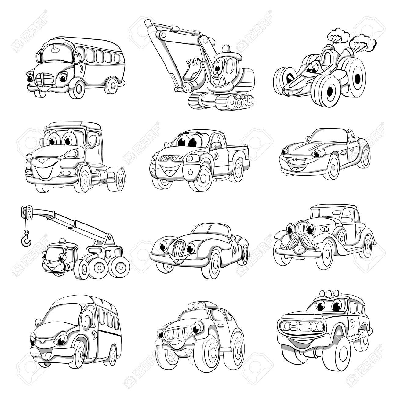 ファニー漫画トランスポートのセットです 塗り絵 のイラスト素材 ベクタ Image